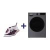 بكج غسالة 8كيلو لون سلفر مع المكواة